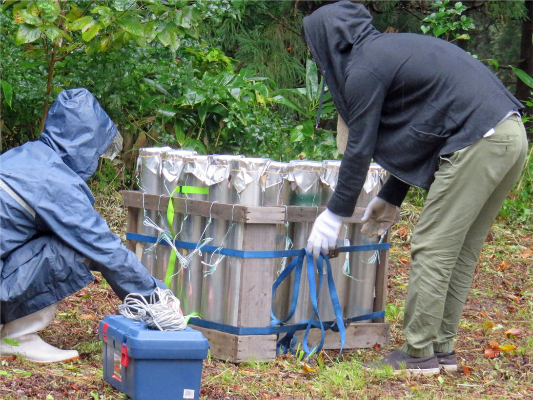 ドラム缶を2本重ねて、いよいよ打ち上げ開始。 |