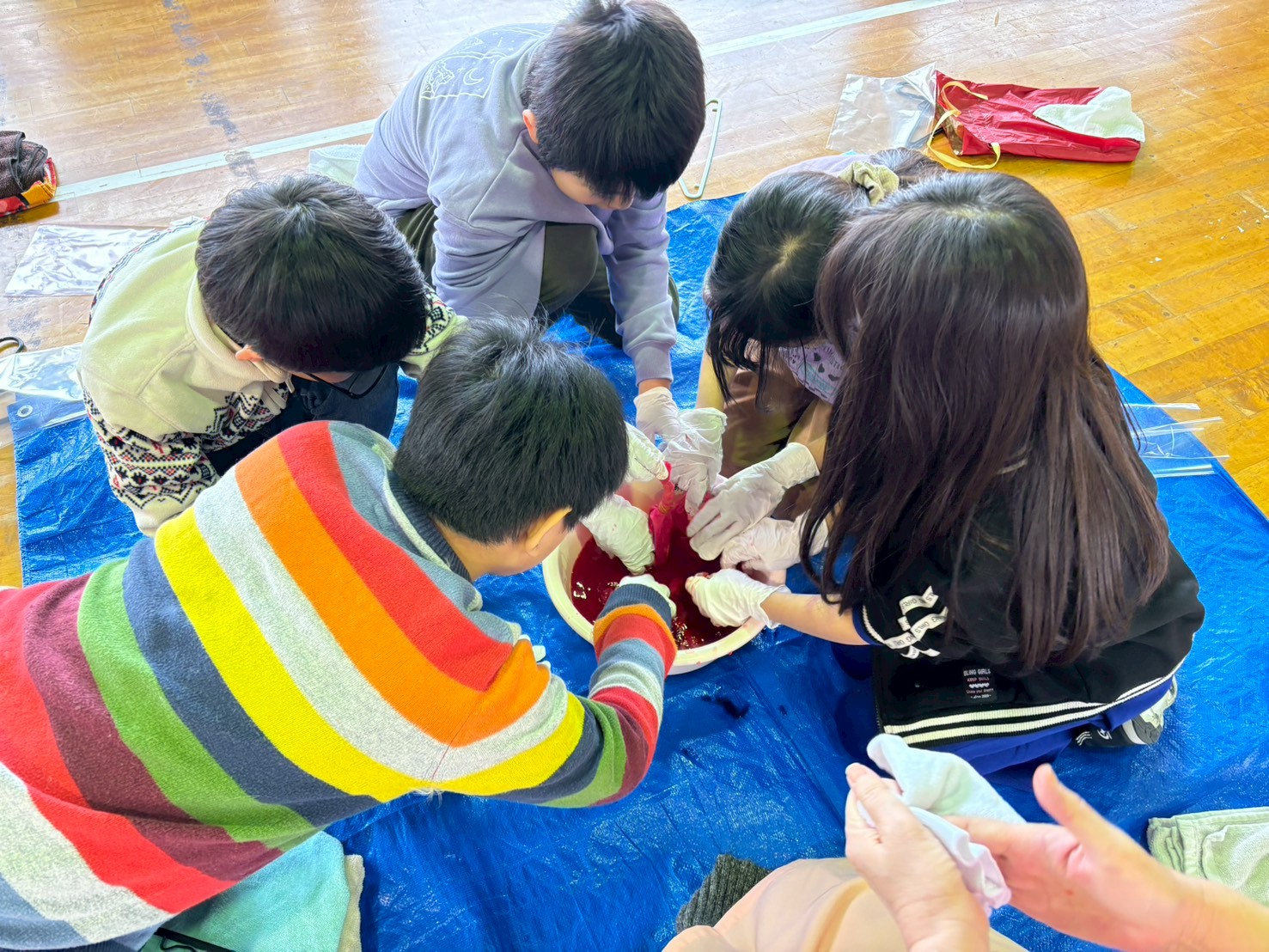 加茂小学校3年生 雪椿の花びら染体験    R8.2.25